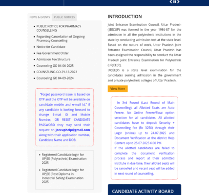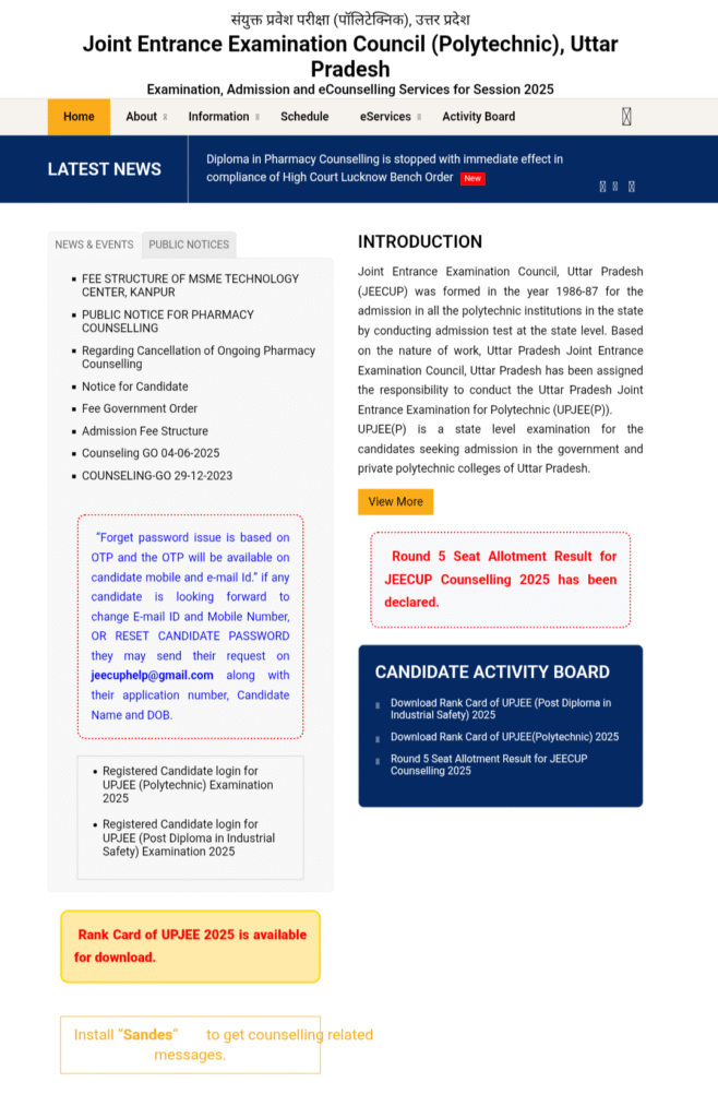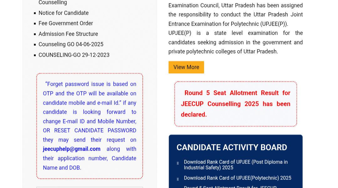 JEECUP Counselling 2025:यूपी पॉलिटेक्निक राउंड 5 सीट अलॉटमेंट रिजल्ट जारी;चेक करें