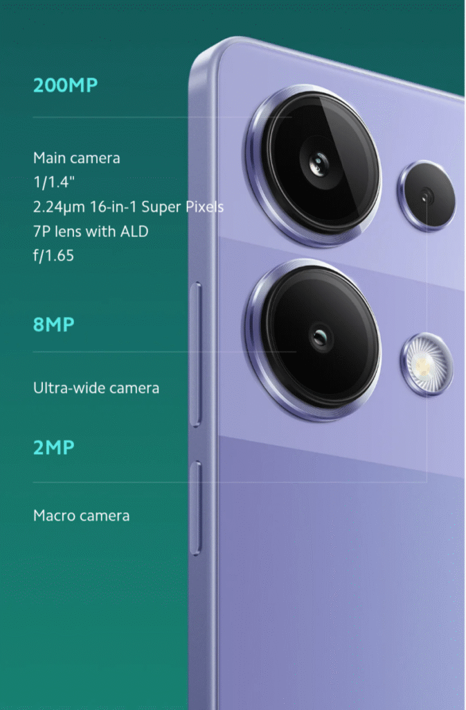 Redmi Note 13 Pro में आपको 6.67 इंच का AMOLED डिस्प्ले मिलता है. फ़ोन कि स्क्रीन बड़ी और शानदार है. और इसके साथ 120Hz का रिफ्रेश रेट है,जो गेमिंग और मल्टीटास्किंग को बहुत स्मूथ बनाता है. 1800 निट्स पीक ब्राइटनेस का मतलब है की इसमें आप धुप में भी फ़ोन को इस्तेमाल कर सकते है. इस फ़ोन में आपको 200MP का प्राइमरी कैमरा मिलता है. इसके अलावा इस फ़ोन में 8MP का अल्ट्रावॉइस लेंस और 2MP का मेक्रो लेंस भी शामिल है. इस फ़ोन में आपको 8GB और 12GB रैम का विकल्प मिलता है.